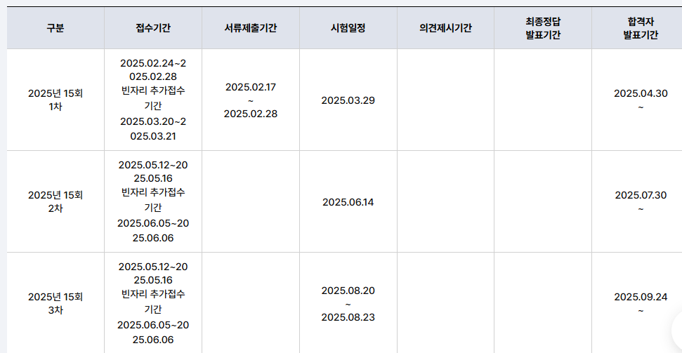 시험 준비를 위해서는 미리미리 공고를 확인하고, 자신에게 맞는 학습 계획을 수립하는 것이 중요합니다. 과거의 시험일정을 참고하여 대략적인 시기를 예측해 볼 수는 있지만, 반드시 공식 발표를 통해 정확한 일정을 확인하는 것을 잊지 마세요.